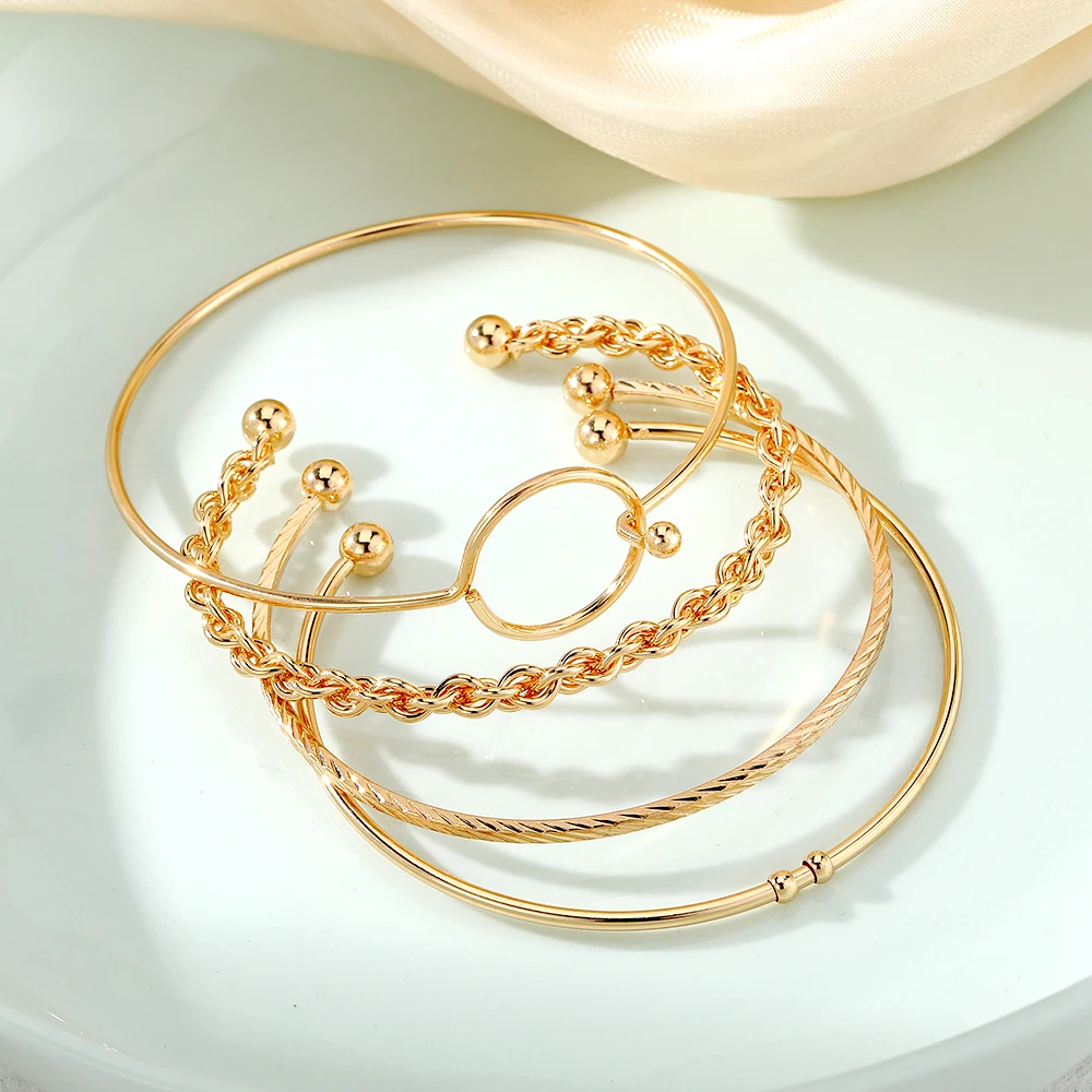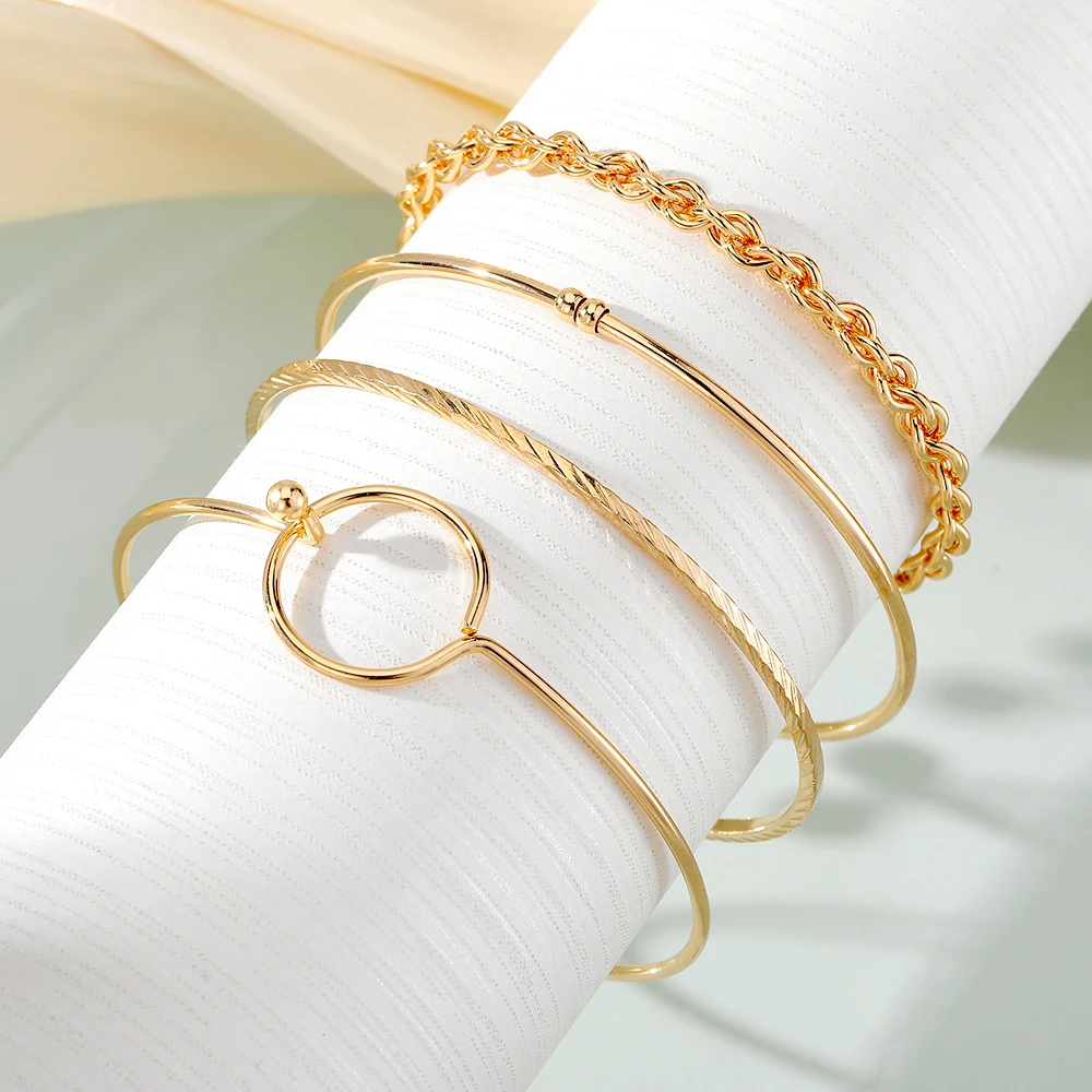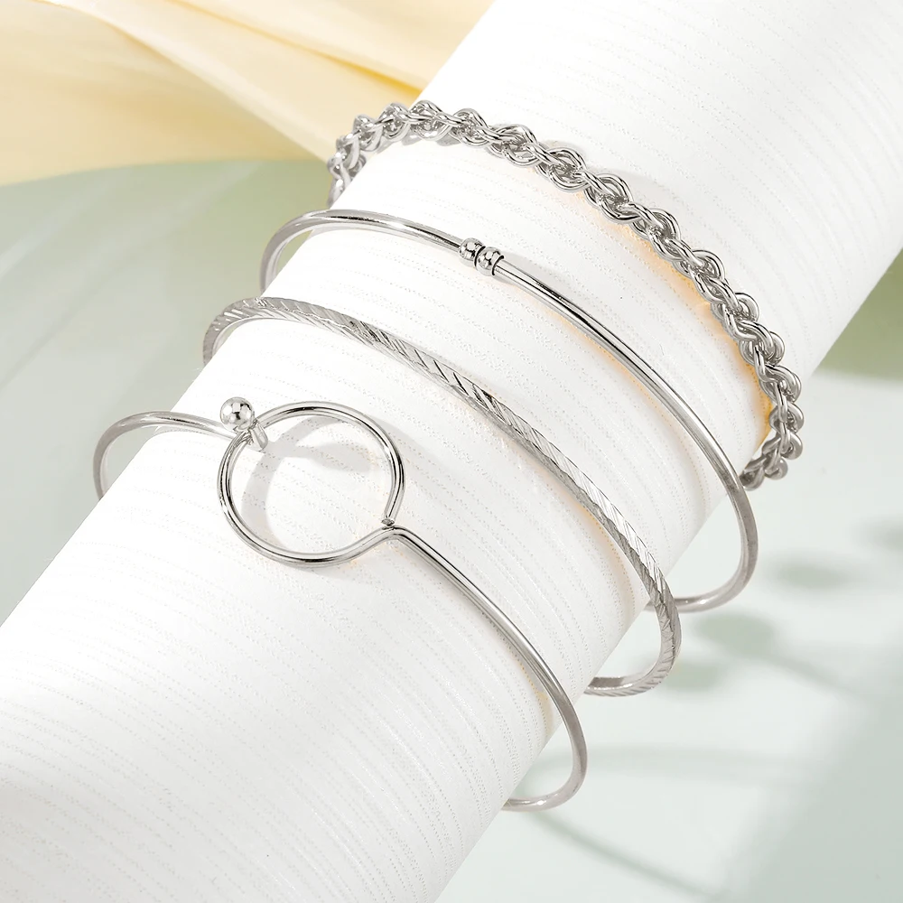 – circle bangle, twisted band, smooth cuff, and chain link bracelet